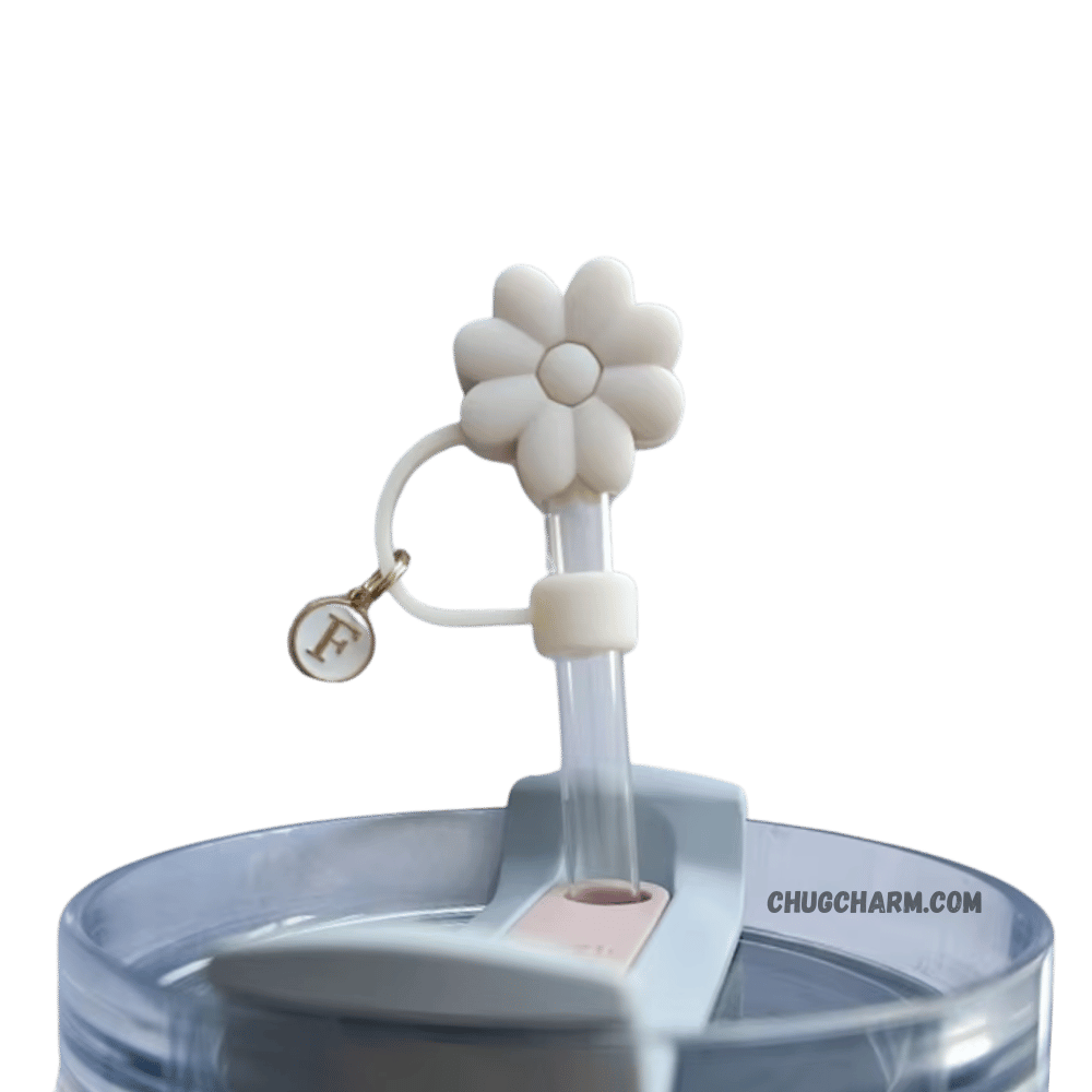 Personalized Flower Silicone Straw Cap for Stanley Tumbler – A to Z Initial Charm